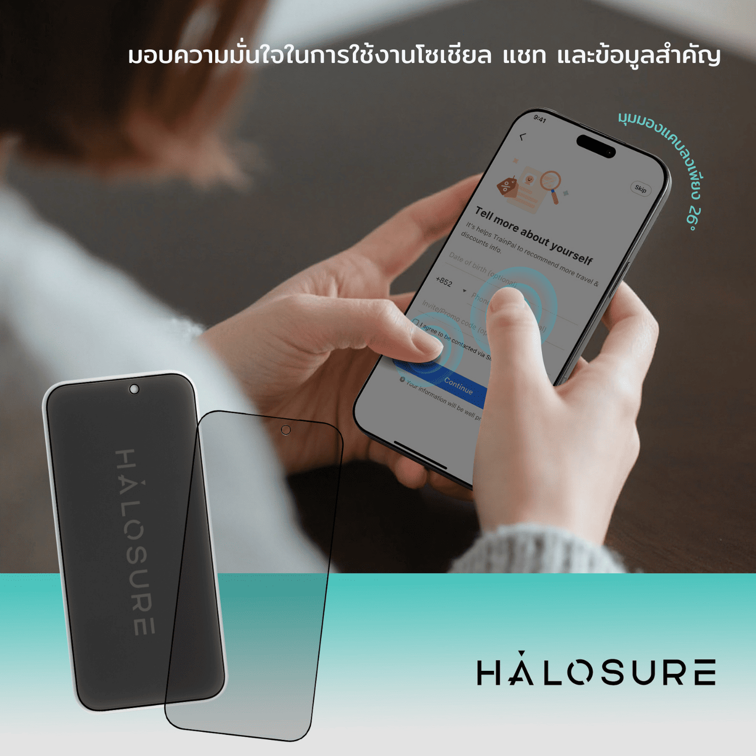 มอบความมั่นใจในการใช้งานโซเชียล แชทและข้อมูลสำคัญ เพิ่มความเป็นส่วนตัวมากขึ้น ด้วยมุมมองแคบลงเพียง 26°