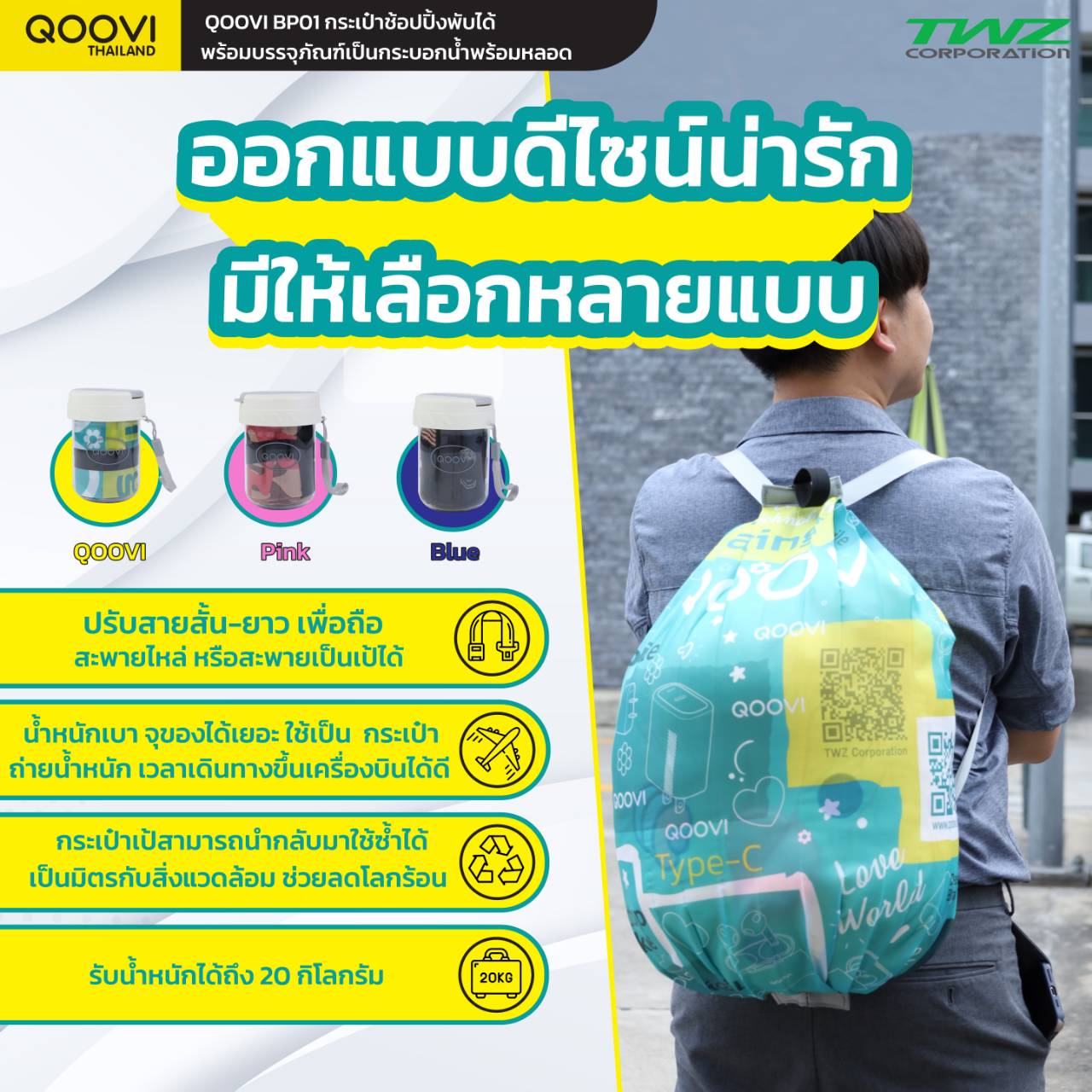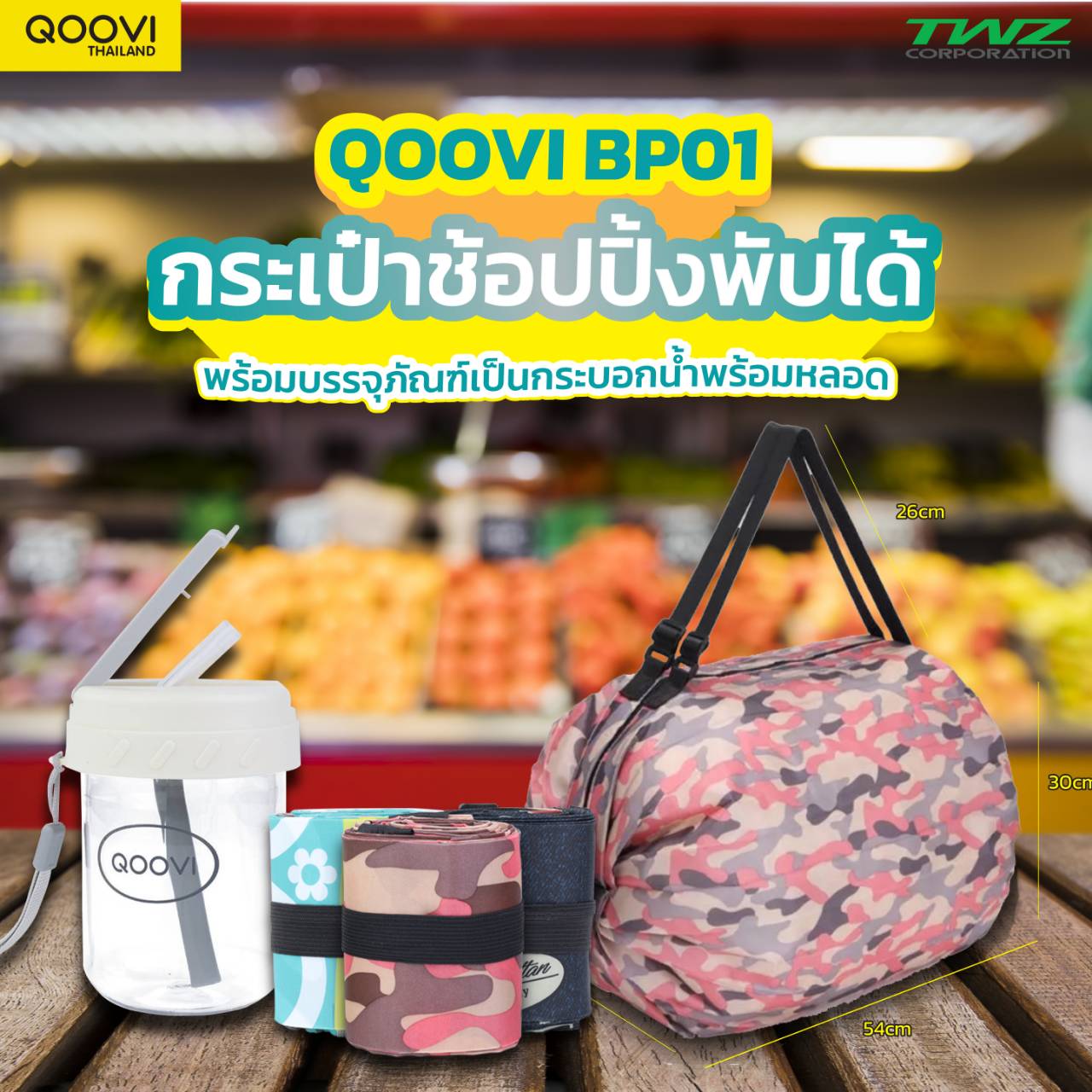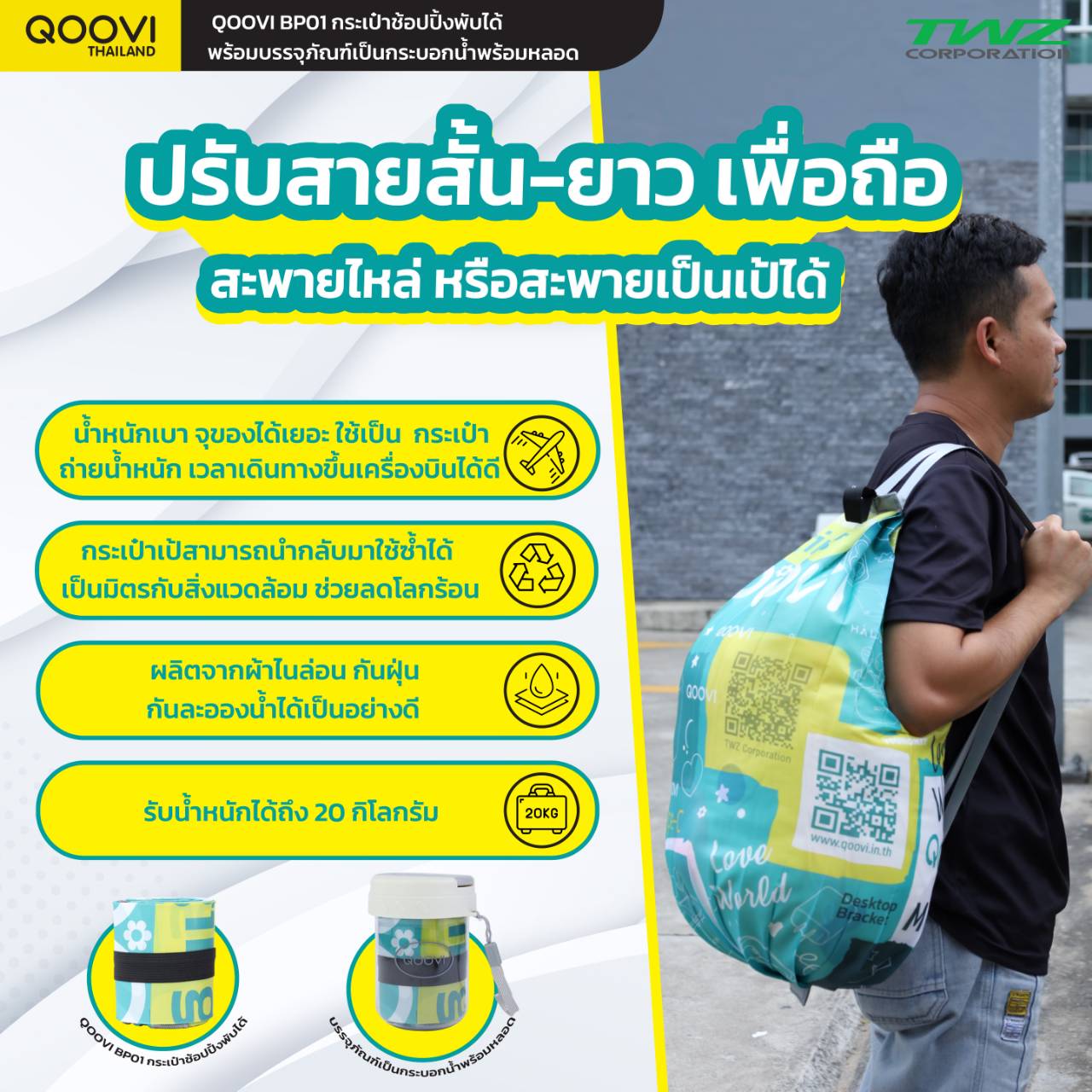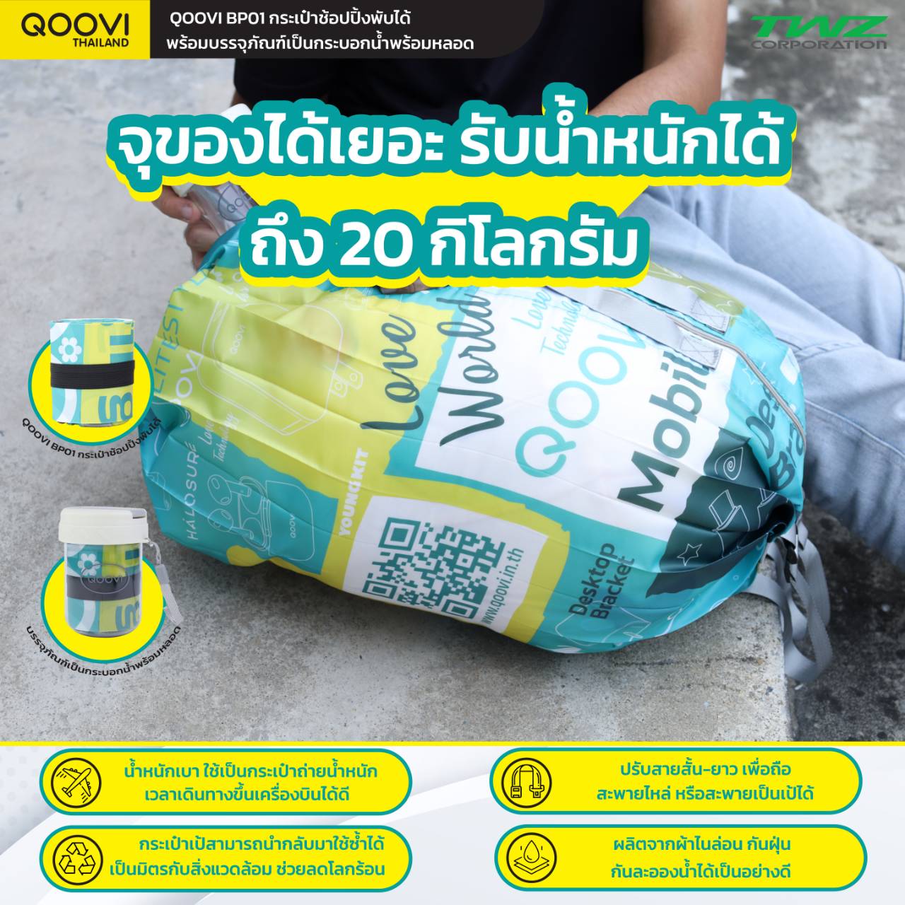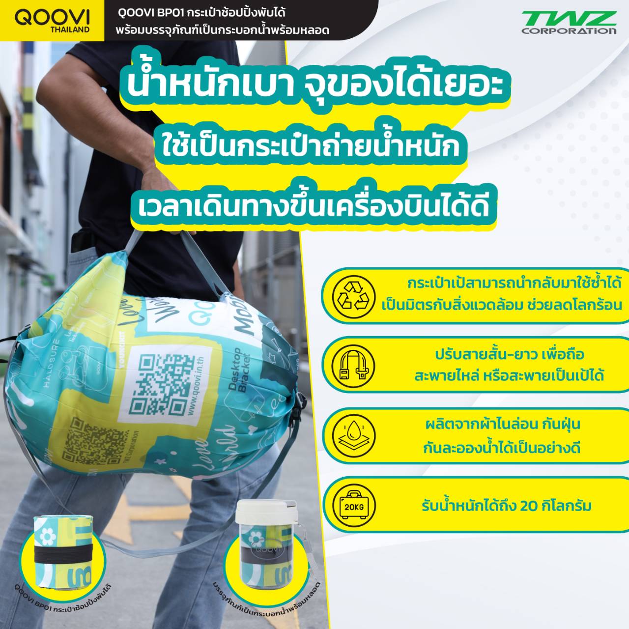 QOOVI BP01 กระเป๋าช้อปปิ้งพับได้ มาพร้อมกระบอกน้ำพกพาสะดวก เป็นมิตรกับสิ่งแวดล้อม