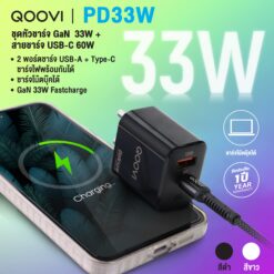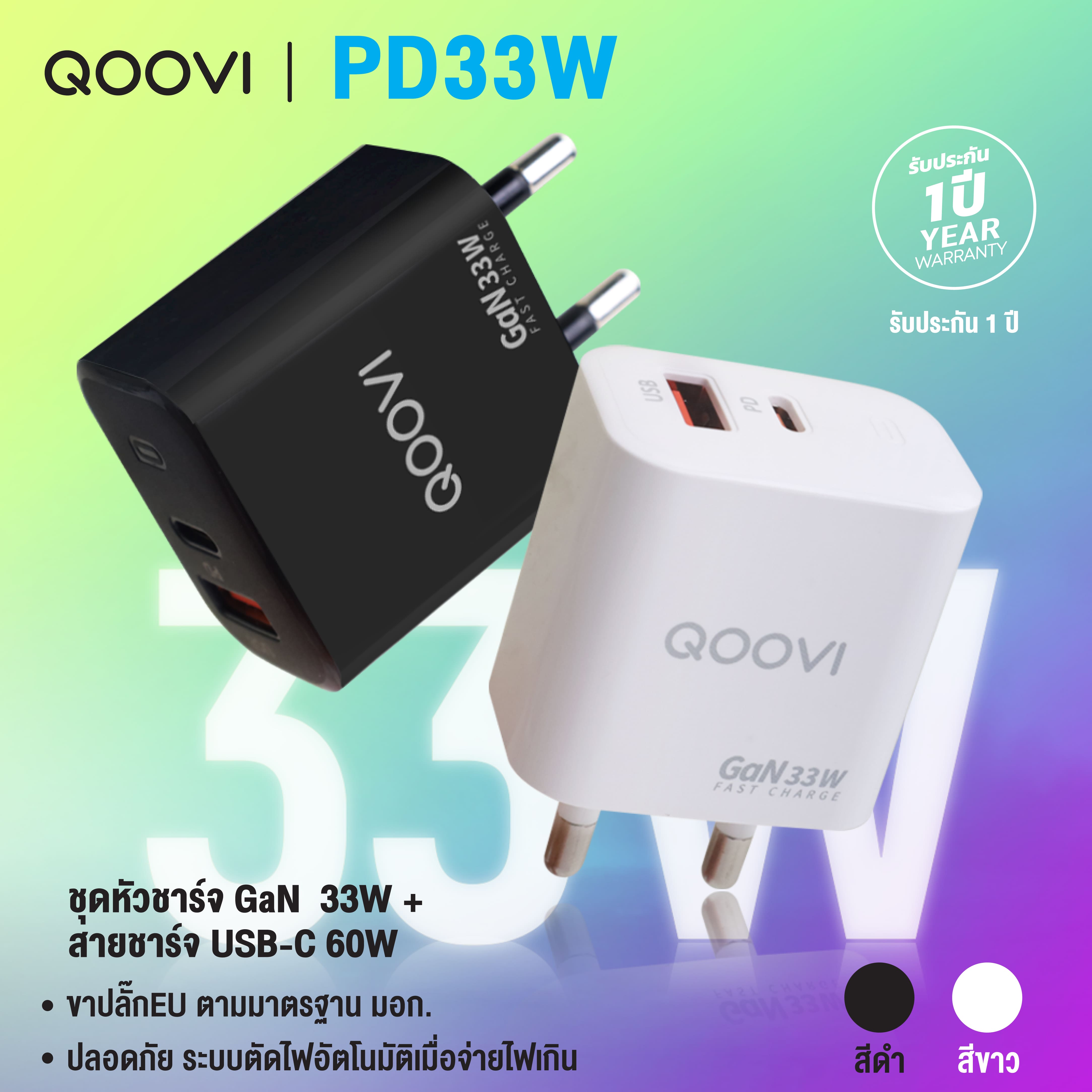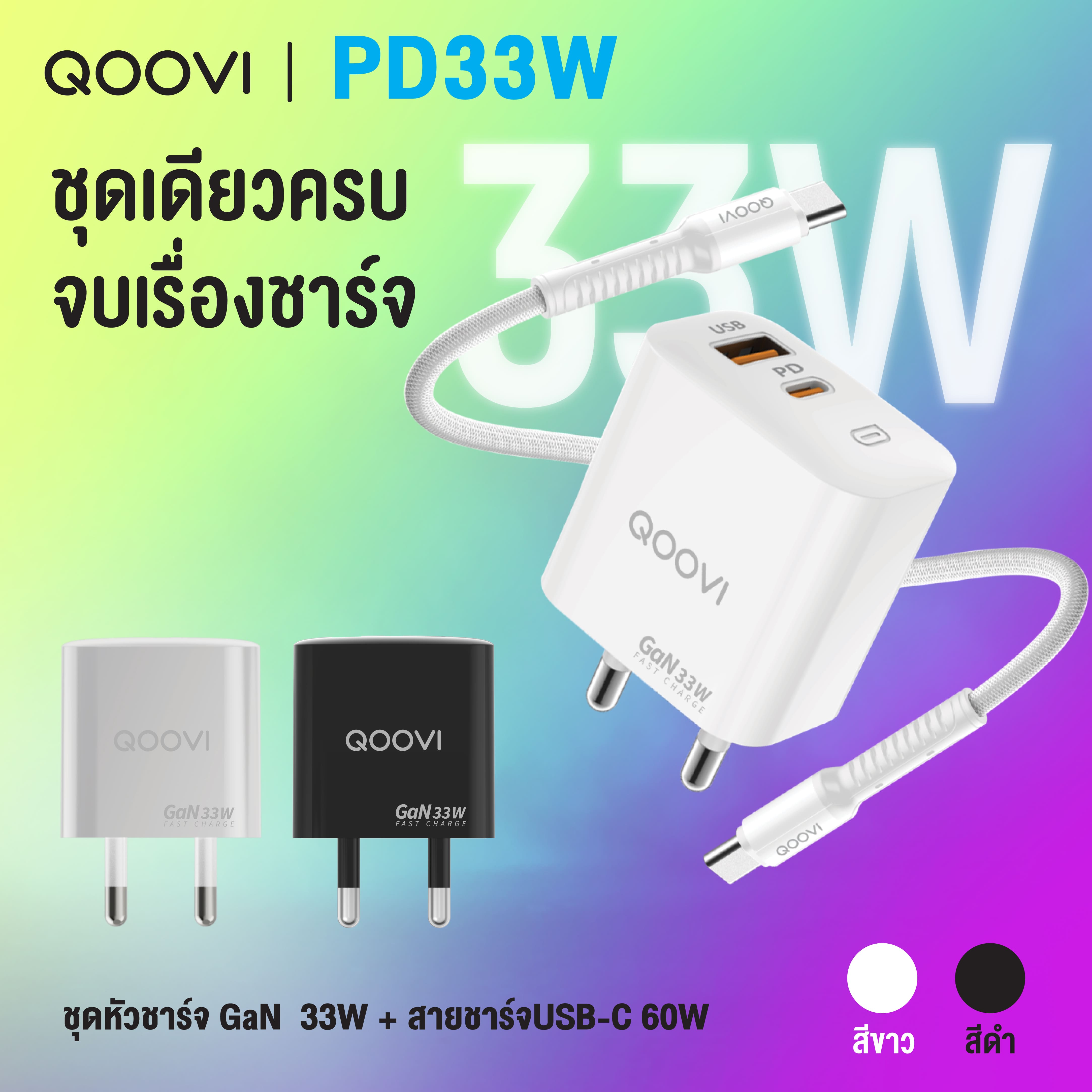 QOOVI ชุดชาร์จเร็วรองรับ PD 33W 2 พอร์ต USB-A และ Type-C + สายType C to C ชาร์จเร็ว ของแท้ รับประกัน 1ปี รุ่น PD33W