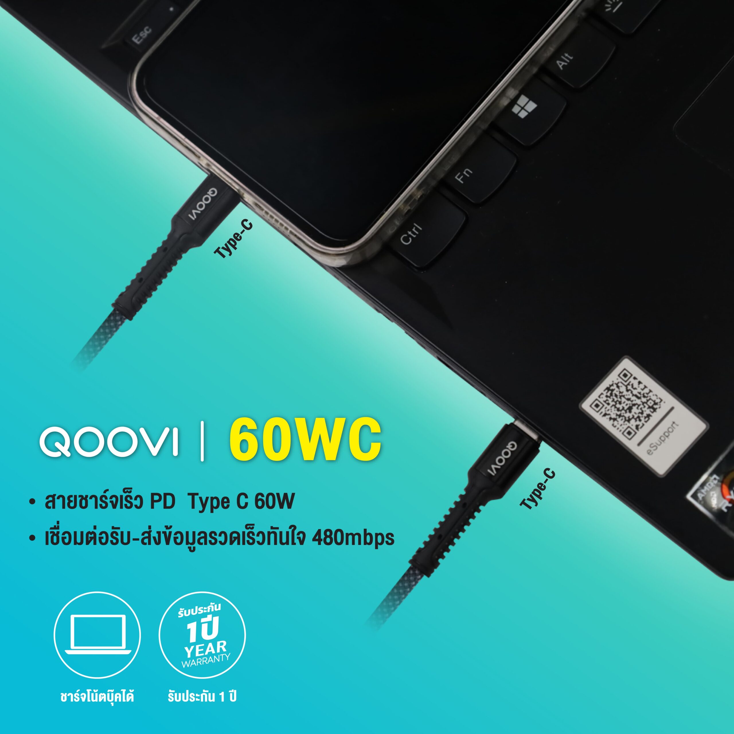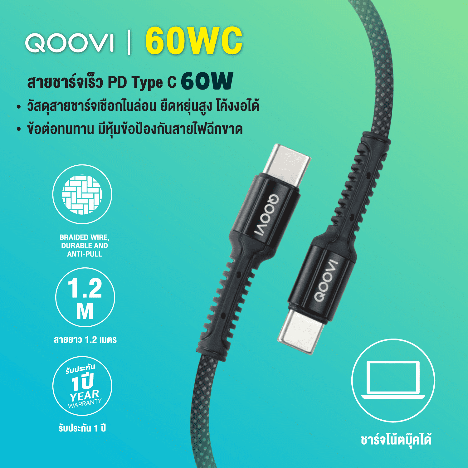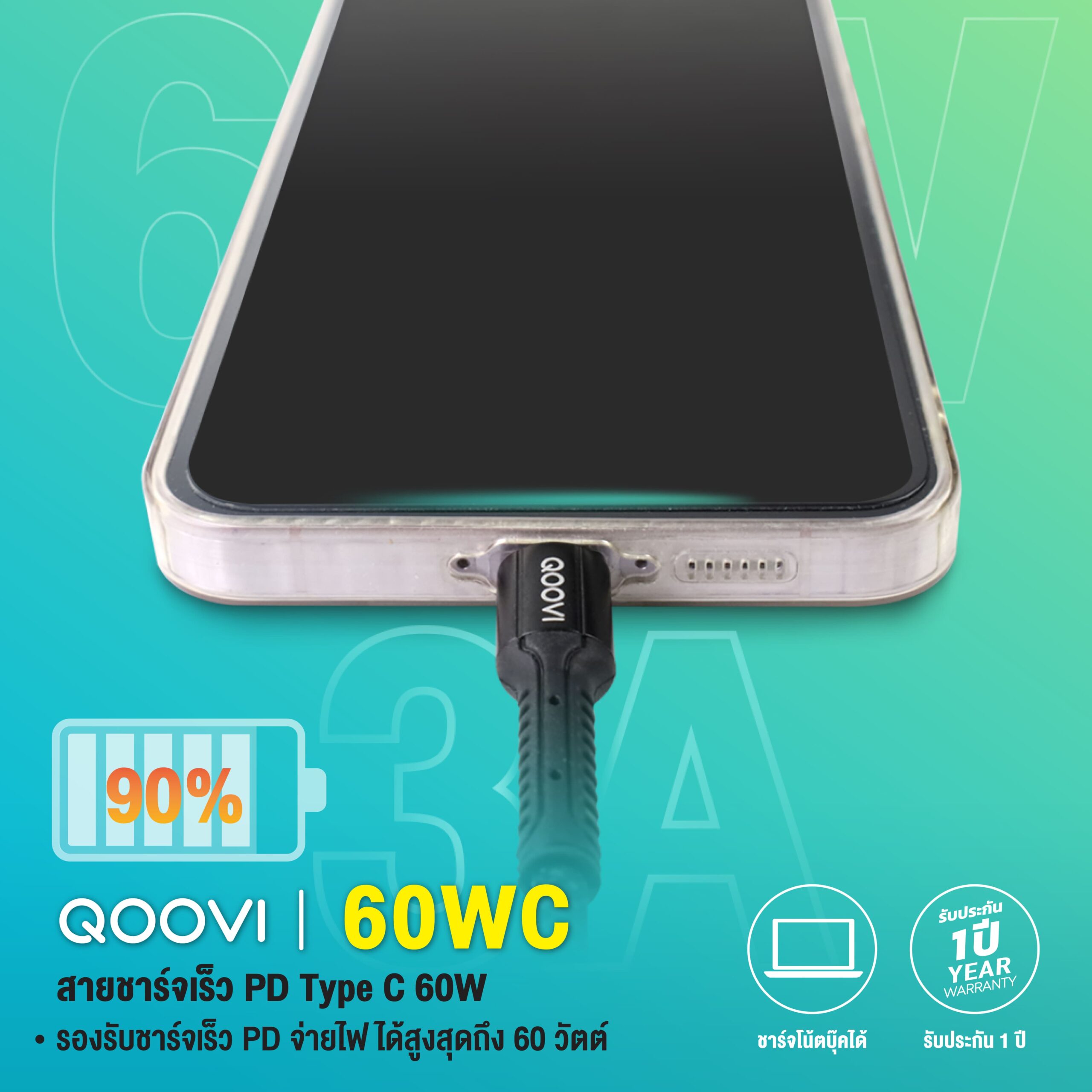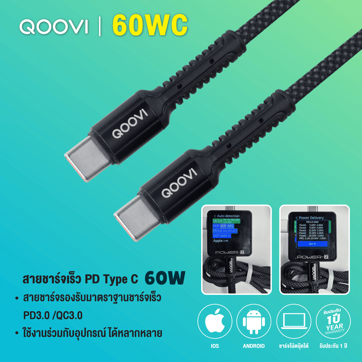 ‘QOOVI 60WC สายชาร์จเร็ว PD Type C 60W’